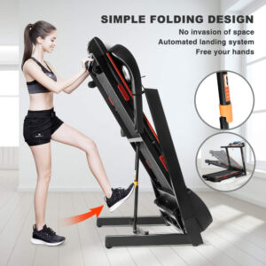 Easy to fold and unfold with the hydraulic arm that locks the treadmill into place,save your floor space at home or office and time to go to gym to keep fit.