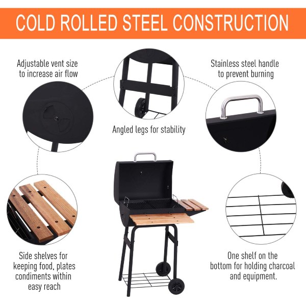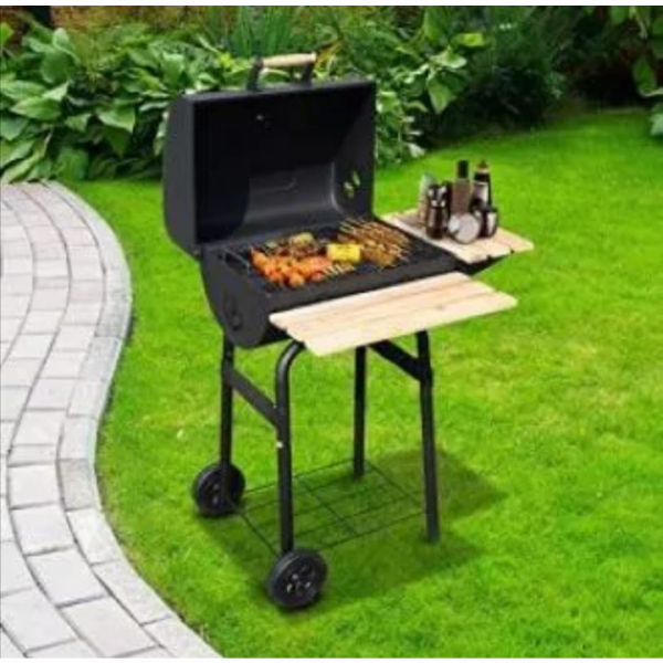 Outdoor Charcoal BBQ Grill With storage rack at the bottom.