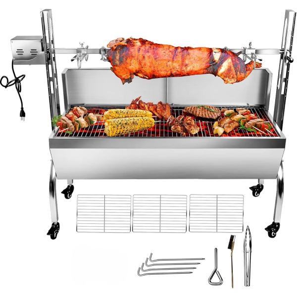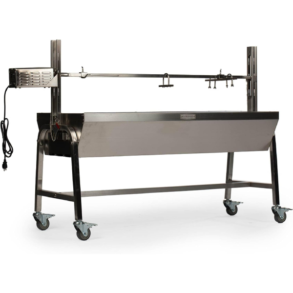 The 51-inch dual prong spit rod can roast pigs, lamb, chicken, turkey, pork shoulders, or anything that weighs up to 60kg.