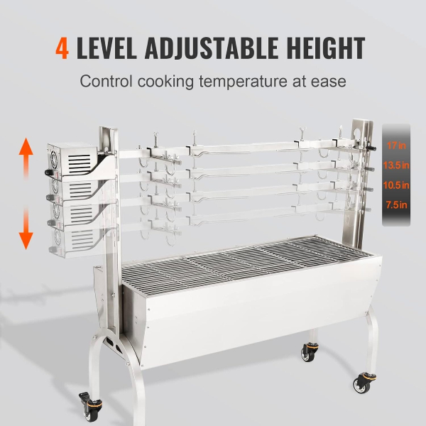 Heavy Duty Outdoor Stainless Steel BBQ Electric Rotisserie Charcoal Grill 60kg