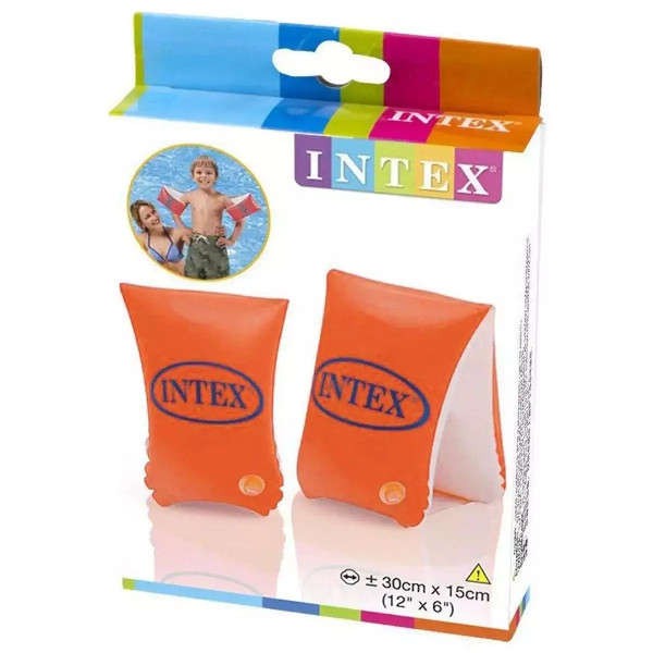The arm bands feature 2 air chambers for added durability safety and buoyancy and come in bright orange with a blue Intex logo. Flat inner panels enhance comfort when worn.