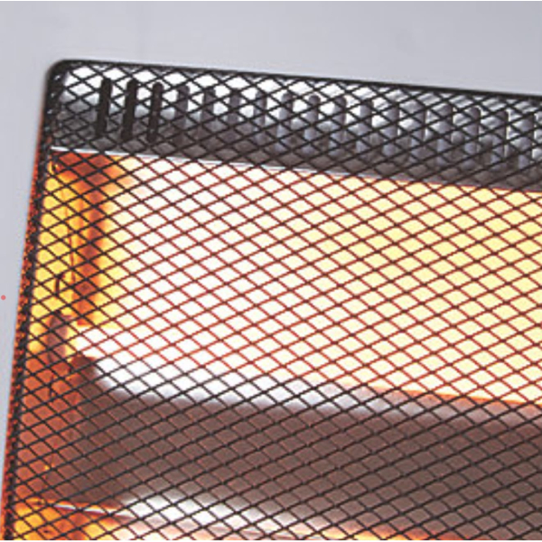 Safety Grill: Features a protective metal grill to prevent accidental contact with heating elements.