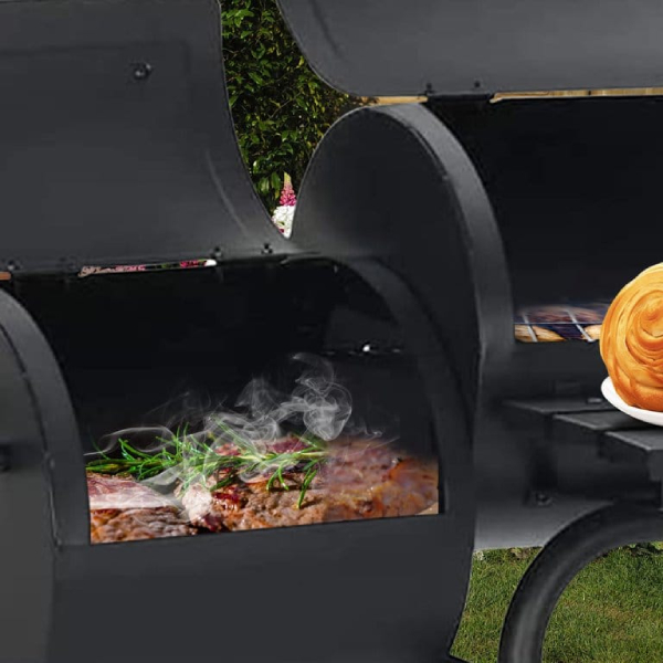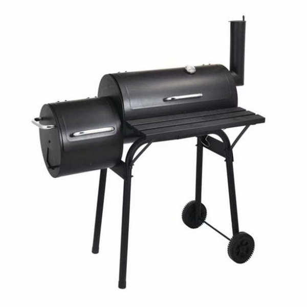 The attached steel firebox helps reduce smoking and offset heat for a more comfortable cooking environment.