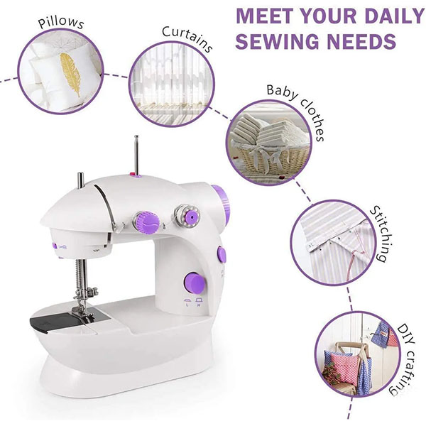 The Machine has two speeds, night light and can be easy controlled by power button or a foot pedal. It’s works good to sew most materials, and in our test it’s power enough to sew 4 layers of denim.