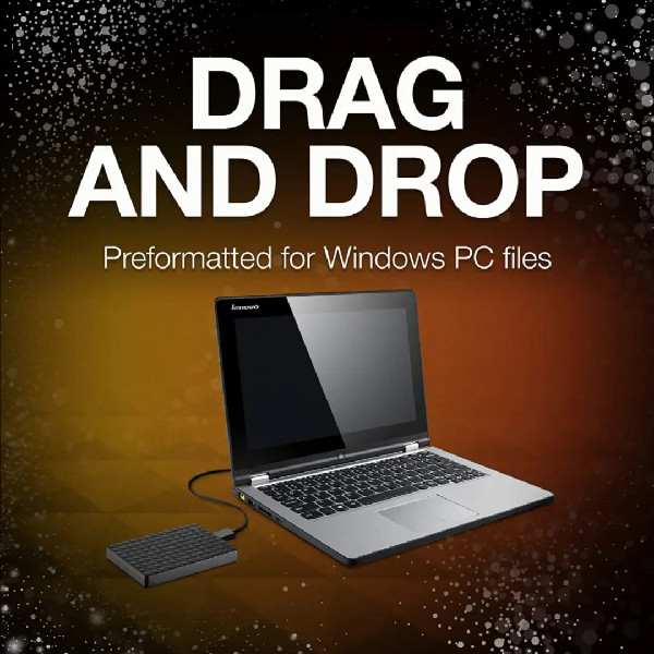 • This external hard drive for Windows computers makes backup a snap just drag and drop.