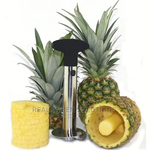 Durable materials. Spiral slicer blade is manufactured with high-quality stainless steel brushed metal for optimal longevity. The spiral 3 in 1 pineapple corer, slicer and peeler works like a cork screw, eliminating the flesh in effortlessly formed earrings while leaving the core in the shell. the pineapple covering remains intact so you can use it for serving a sweet or fruit salad.