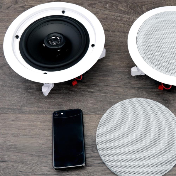 Flush Mount Design: Compact flush mount design for simple easy installation in-wall or in-ceiling, or pre-cut speaker openings for home or professional use.