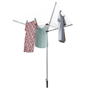 – Low stretch 3 mm polyamide inner clothesline with UV protected PVC sheath. The line will not become sticky and damage laundry due to UV exposure.